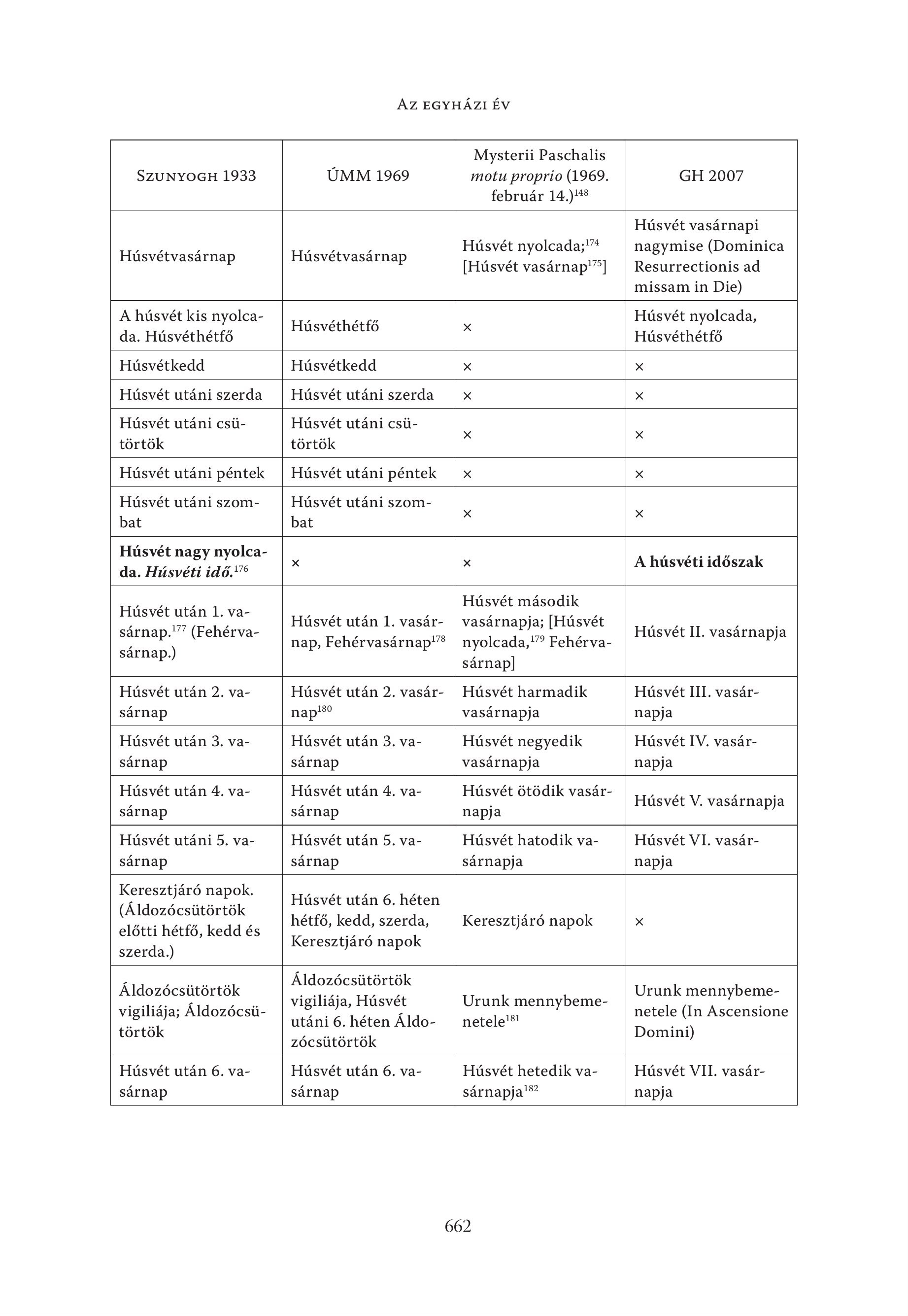 Mysterii Paschalis SZUNYOGH 1933 ÚMM 1969 motu proprio (1969. GH 2007 február 14.) Húsvét vasárnapi Húsvét nyolcada; nagymise (Dominica Húsvétvasárnap Húsvétvasárnap >. Y , 175 8y ( . [Hüsvét vasärnap'*] | Resurrectionis ad missam in Die) A húsvét kis nyolca- Húsvét nyolcada, Húsvéthétfő x da. Hüsvethetfö Hüsvethetfö Hüsvetkedd Hüsvetkedd x x Hüsvet utäni szerda Hüsvet utäni szerda x x Hüsvet utäni csü- Hüsvet utäni csü- x x törtök törtök Húsvét utáni péntek | Hüsvet utäni pentek | x x Hüsvet utäni szom- Hüsvet utäni szomx x bat bat Húsvét nagy nyolca- INH AK sy ny x x A húsvéti időszak da. Húsvéti idő." Húsvét után I. vasarnap.!”’ (Fehérvasärnap.) Hüsvet utän 1. vasärnap, Fehervasärnap!”® Hüsvet mäsodik vasärnapja; [Hüsvet nyolcada," Fehérvasärnap] Húsvét II. vasárnapja Húsvét után 2. vasárnap Húsvét után 2. vasárnap! Húsvét harmadik vasárnapja Húsvét III. vasárnapja Húsvét után 3. vasárnap Húsvét után 3. vasárnap Húsvét negyedik vasárnapja Húsvét IV. vasárnapja Húsvét után 4. vasárnap Húsvét után 4. vasárnap Húsvét ötödik vasárnapja Húsvét V. vasárnapja Húsvét utáni 5. vasárnap Húsvét után 5. vasárnap Húsvét hatodik vasárnapja Húsvét VI. vasárnapja Keresztjáró napok. (Áldozócsütörtök előtti hétfő, kedd és szerda.) Húsvét után 6. héten hétfő, kedd, szerda, Keresztjáró napok Keresztjáró napok Áldozócsütörtök vigiliája; Áldozócsütörtök Áldozócsütörtök vigiliája, Húsvét utáni 6. héten Áldozócsütörtök Urunk mennybemenetele!#! Urunk mennybemenetele (In Ascensione Domini) Húsvét után 6. vasárnap Húsvét után 6. vasárnap Húsvét hetedik vasárnapja!?? Húsvét VII. vasárnapja