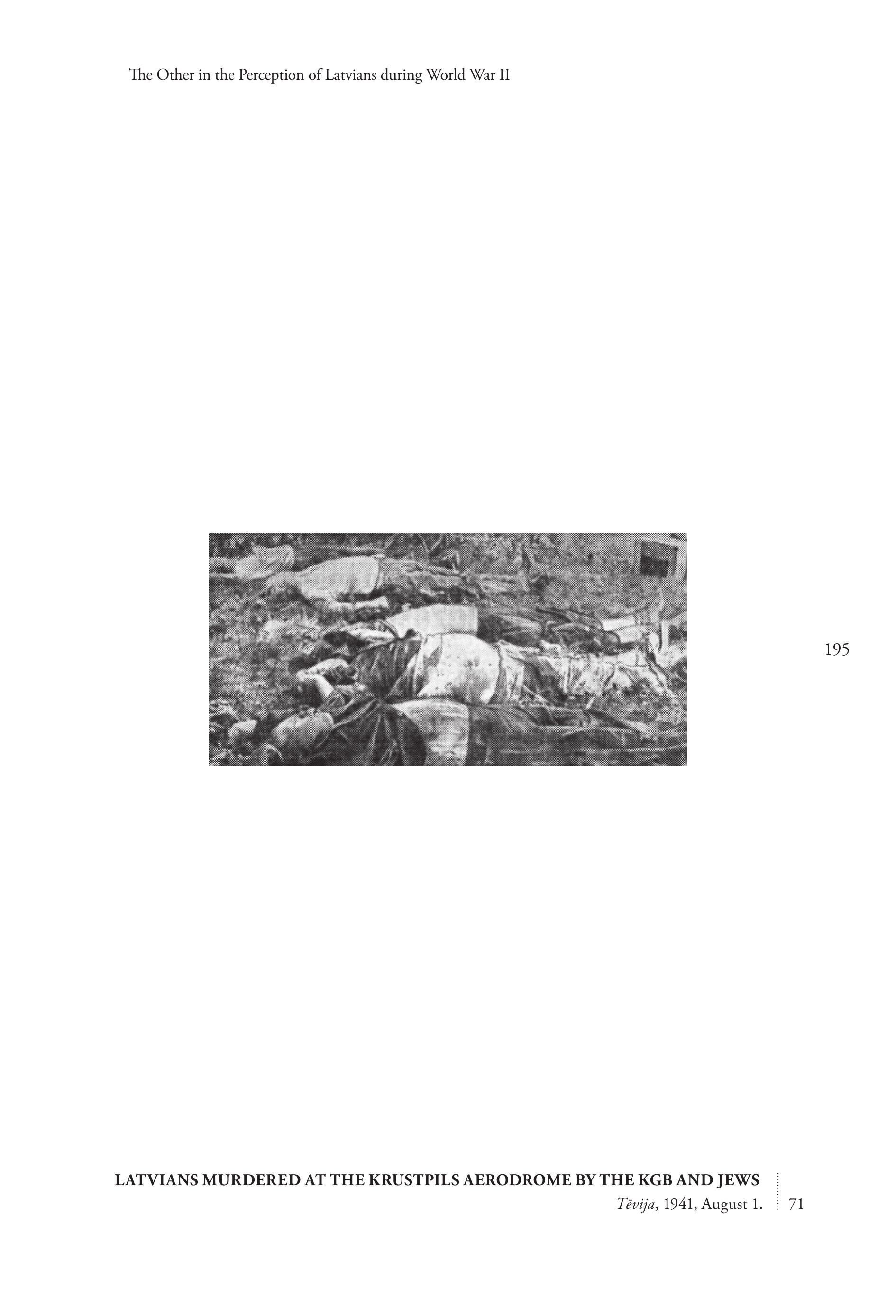 The Other in the Perception of Latvians during World War II 195 LATVIANS MURDERED AT THE KRUSTPILS AERODROME BY THE KGB AND JEWS Tevija, 1941, August 1. : 71