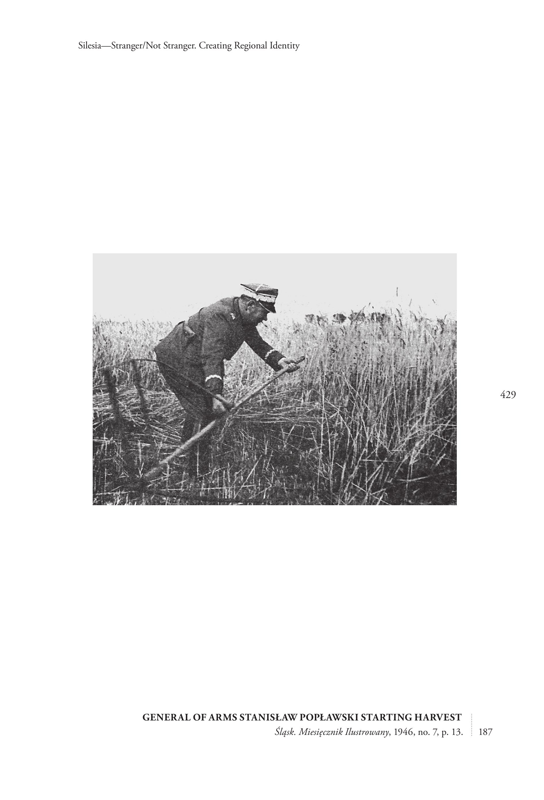 Silesia—Stranger/Not Stranger. Creating Regional Identity 429 GENERAL OF ARMS STANISLAW POPLAWSKI STARTING HARVEST | Slask. Miesiecznik Iustrowany, 1946, no. 7, p. 13. : 187