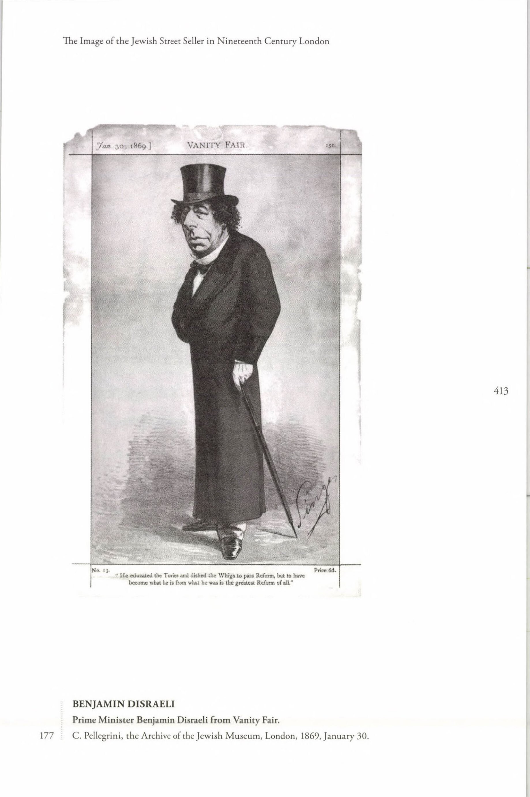 The Image of the Jewish Street Seller in Nineteenth Century London & gr VANITY FAIR 413 No. 13. Price 6d. * He educated the Tories and dished the Whigs to pass Reform, but to have become what he is from what he was is the greatest Reform of all.” BENJAMIN DISRAELI Prime Minister Benjamin Disraeli from Vanity Fair. 177 C. Pellegrini, the Archive of the Jewish Museum, London, 1869, January 30.