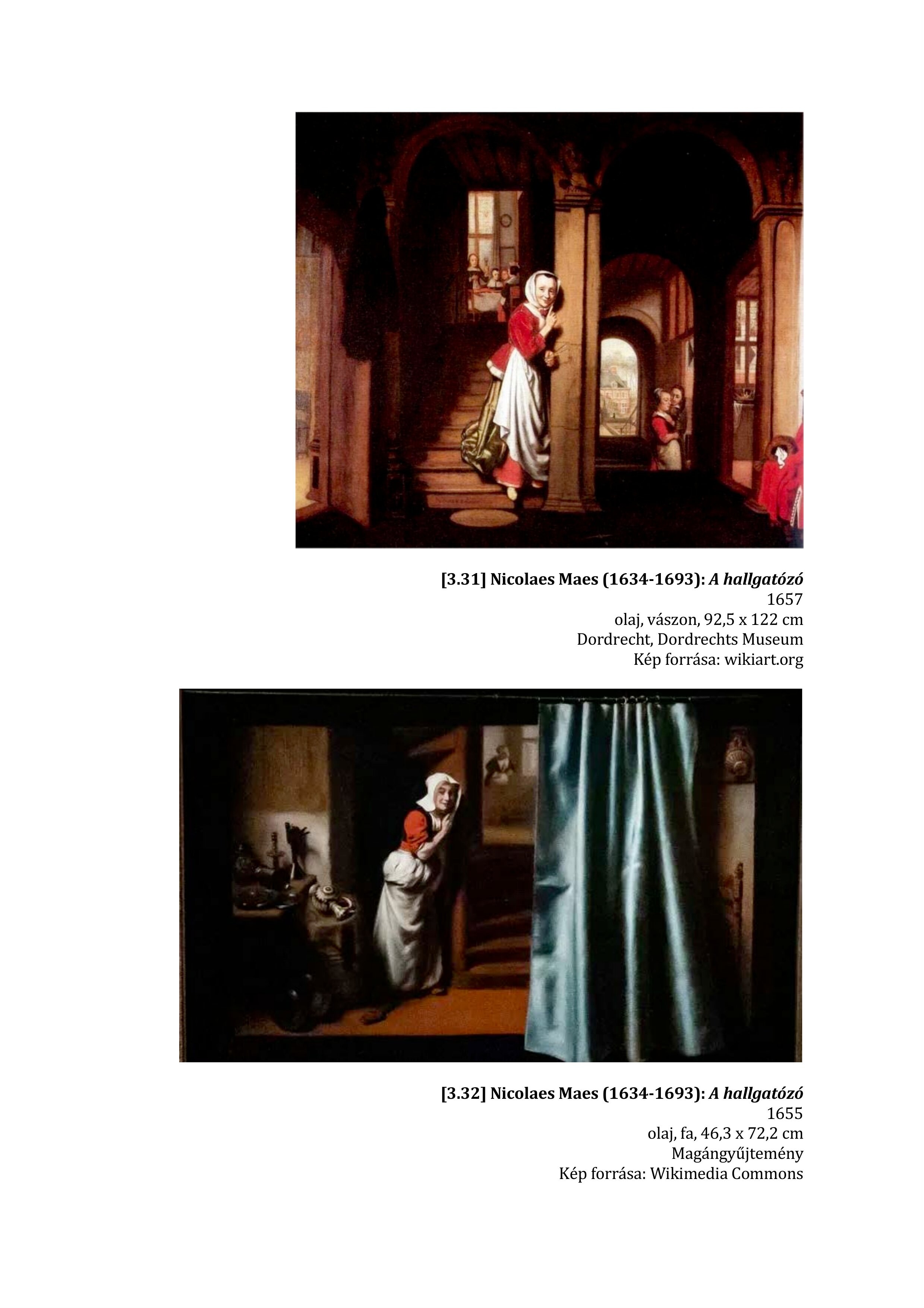 ME ie msi ne [3.31] Nicolaes Maes (1634-1693): A hallgatözö 1657 olaj, vaszon, 92,5 x 122 cm Dordrecht, Dordrechts Museum Kép forrása: wikiart.org [3.32] Nicolaes Maes (1634-1693): A hallgatózó 1655 olaj, fa, 46,3 x 72,2 cm Magángyűjtemény Kép forrása: Wikimedia Commons