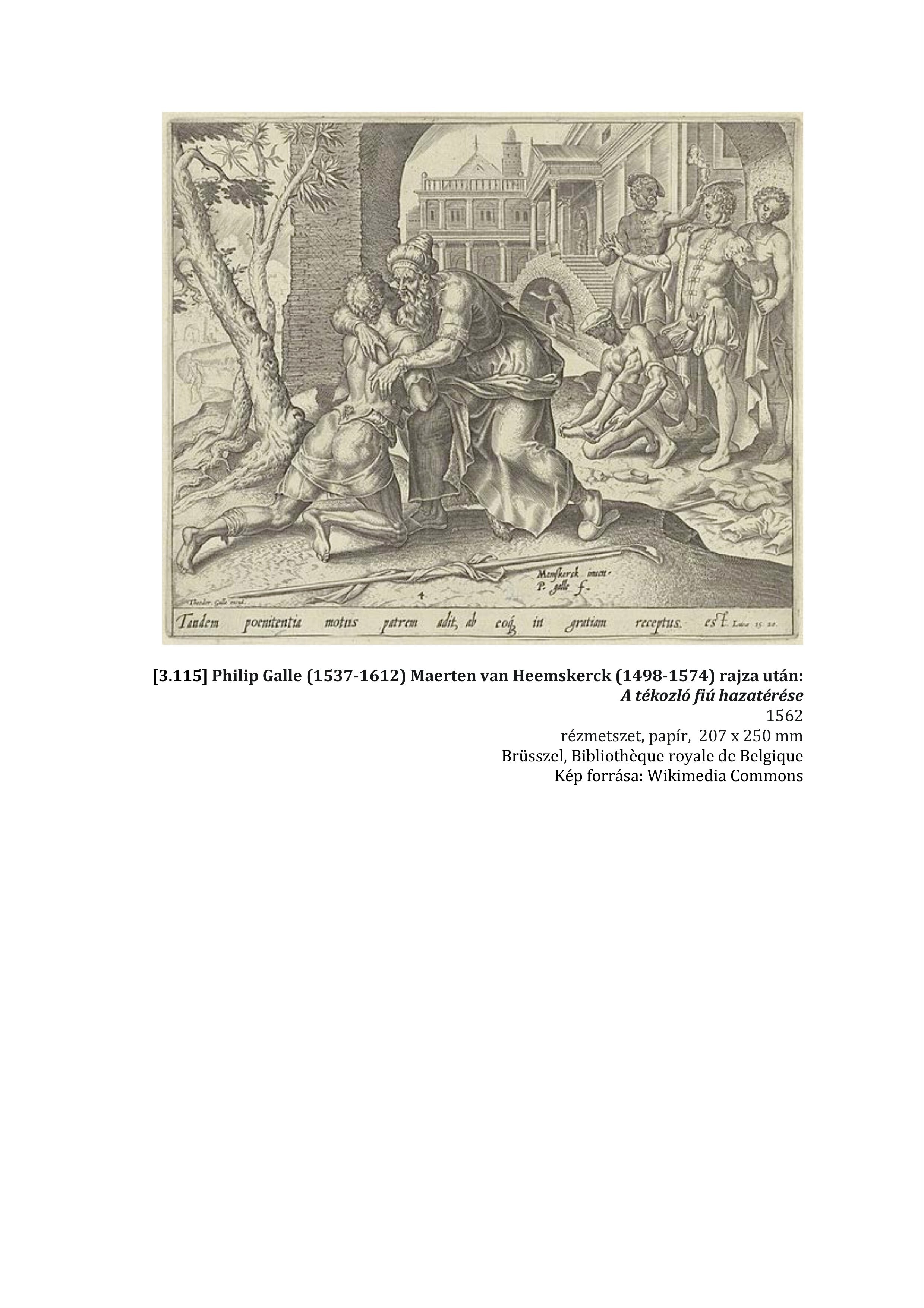 [3.115] Philip Galle (1537-1612) Maerten van Heemskerck (1498-1574) rajza után: A tékozló fiú hazatérése 1562 rézmetszet, papír, 207 x 250 mm Brüsszel, Bibliothégue royale de Belgigue Kép forrása: Wikimedia Commons