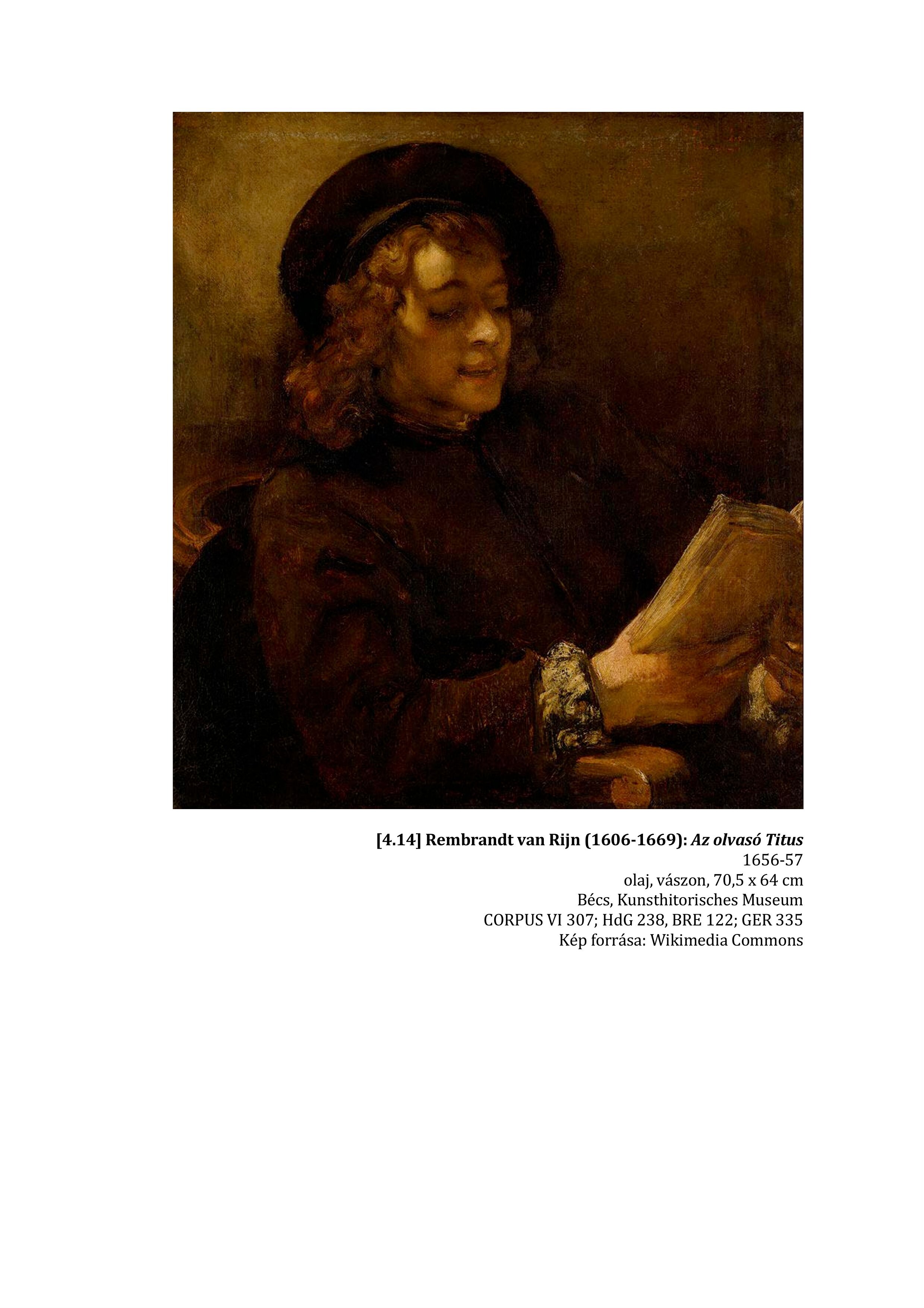 [4.14] Rembrandt van Rijn (1606-1669): Az olvasó Titus 1656-57 olaj, vászon, 70,5 x 64 cm Bécs, Kunsthitorisches Museum CORPUS VI 307; HdG 238, BRE 122; GER 335 Kép forrása: Wikimedia Commons