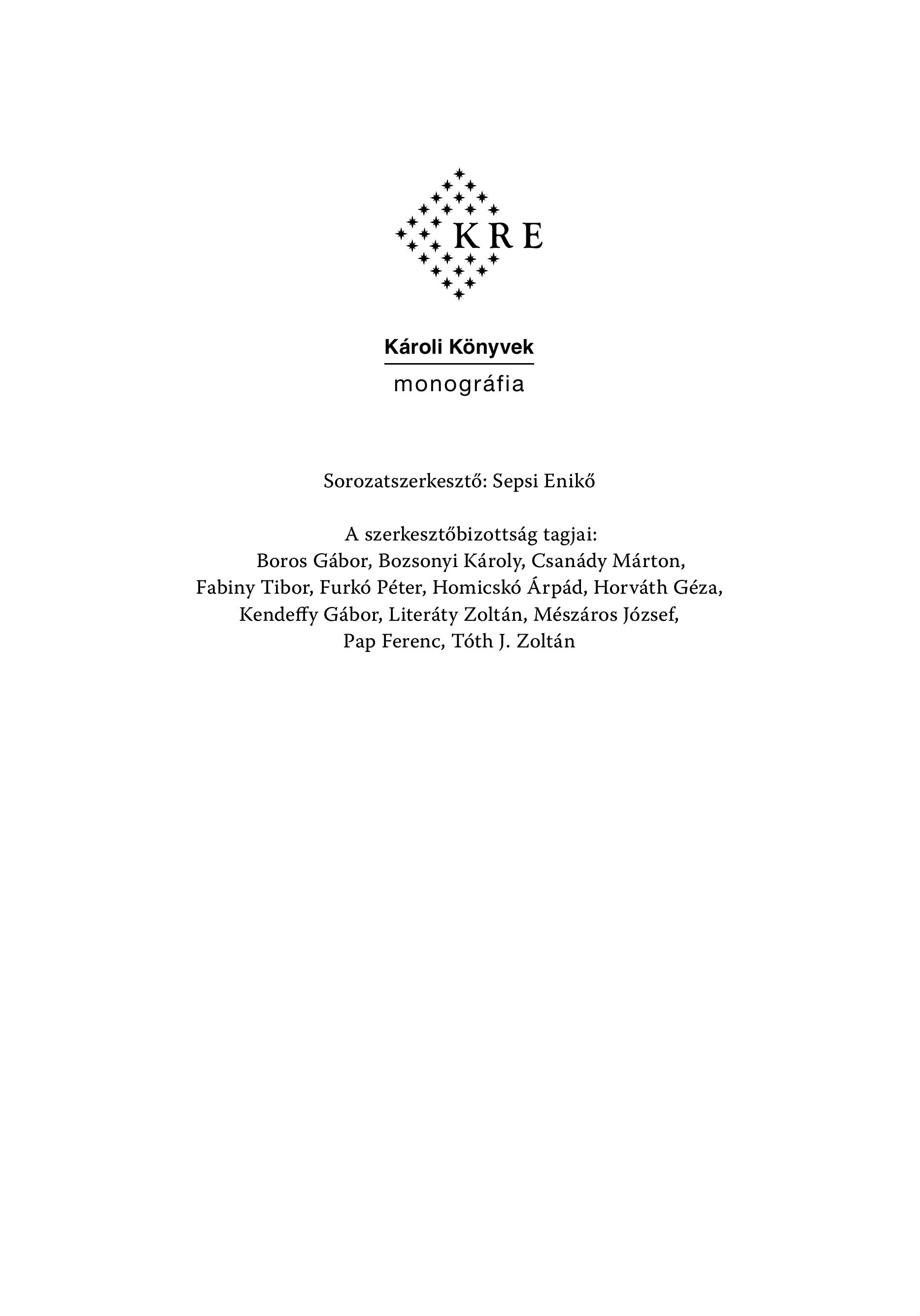 ++ a ++ +" + + +, + at RE * + + * + ++, Károli Könyvek monográfia Sorozatszerkesztő: Sepsi Enikő A szerkesztőbizottság tagjai: Boros Gábor, Bozsonyi Károly, Csanády Márton, Fabiny Tibor, Furkó Péter, Homicskó Árpád, Horváth Géza, Kendeffy Gábor, Literáty Zoltán, Mészáros József, Pap Ferenc, Tóth J. Zoltán