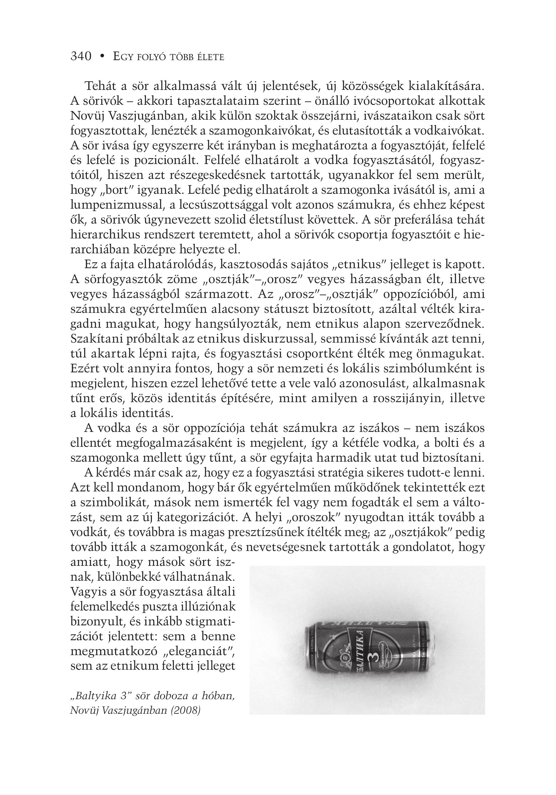 340 " EGY FOLYÓ TÖBB ÉLETE Tehát a sör alkalmassá vált új jelentések, új közösségek kialakítására. A sörivók - akkori tapasztalataim szerint — önálló ivócsoportokat alkottak Novüj Vaszjugánban, akik külön szoktak összejárni, ivászataikon csak sört fogyasztottak, lenézték a szamogonkaivókat, és elutasították a vodkaivókat. A sör ivása így egyszerre két irányban is meghatározta a fogyasztóját, felfelé és lefelé is pozicionált. Felfelé elhatárolt a vodka fogyasztásától, fogyasztóitól, hiszen azt részegeskedésnek tartották, ugyanakkor fel sem merült, hogy , bort" igyanak. Lefelé pedig elhatárolt a szamogonka ivásától is, ami a lumpenizmussal, a lecsúszottsággal volt azonos számukra, és ehhez képest ők, a sörivók úgynevezett szolid életstílust követtek. A sör preferálása tehát hierarchikus rendszert teremtett, ahol a sörivók csoportja fogyasztóit e hierarchiában középre helyezte el. Ez a fajta elhatárolódás, kasztosodás sajátos , etnikus" jelleget is kapott. A sörfogyasztók zöme , osztják"—, orosz" vegyes házasságban élt, illetve vegyes házasságból származott. Az , orosz"-—, osztják" oppozícióból, ami számukra egyértelműen alacsony státuszt biztosított, azáltal vélték kiragadni magukat, hogy hangsúlyozták, nem etnikus alapon szerveződnek. Szakítani próbáltak az etnikus diskurzussal, semmissé kívánták azt tenni, túl akartak lépni rajta, és fogyasztási csoportként élték meg önmagukat. Ezért volt annyira fontos, hogy a sör nemzeti és lokális szimbólumként is megjelent, hiszen ezzel lehetővé tette a vele való azonosulást, alkalmasnak tűnt erős, közös identitás építésére, mint amilyen a rosszijányin, illetve a lokális identitás. A vodka és a sör oppozíciója tehát számukra az iszákos -— nem iszákos ellentét megfogalmazásaként is megjelent, így a kétféle vodka, a bolti és a szamogonka mellett úgy tűnt, a sör egyfajta harmadik utat tud biztosítani. A kérdés már csak az, hogy ez a fogyasztási stratégia sikeres tudott-e lenni. Azt kell mondanom, hogy bár ők egyértelműen működőnek tekintették ezt a szimbolikát, mások nem ismerték fel vagy nem fogadták el sem a változást, sem az új kategorizációt. A helyi , oroszok" nyugodtan itták tovább a vodkát, és továbbra is magas presztízsűnek ítélték meg; az , osztjákok" pedig tovább itták a szamogonkát, és nevetségesnek tartották a gondolatot, hogy amiatt, hogy mások sört isznak, különbekké válhatnának. Vagyis a sör fogyasztása általi felemelkedés puszta illúziónak bizonyult, és inkább stigmatizációt jelentett: sem a benne megmutatkozó , eleganciát", sem az etnikum feletti jelleget , Baltyika 37 sör doboza a hóban, Novüj Vaszjugánban (2008)