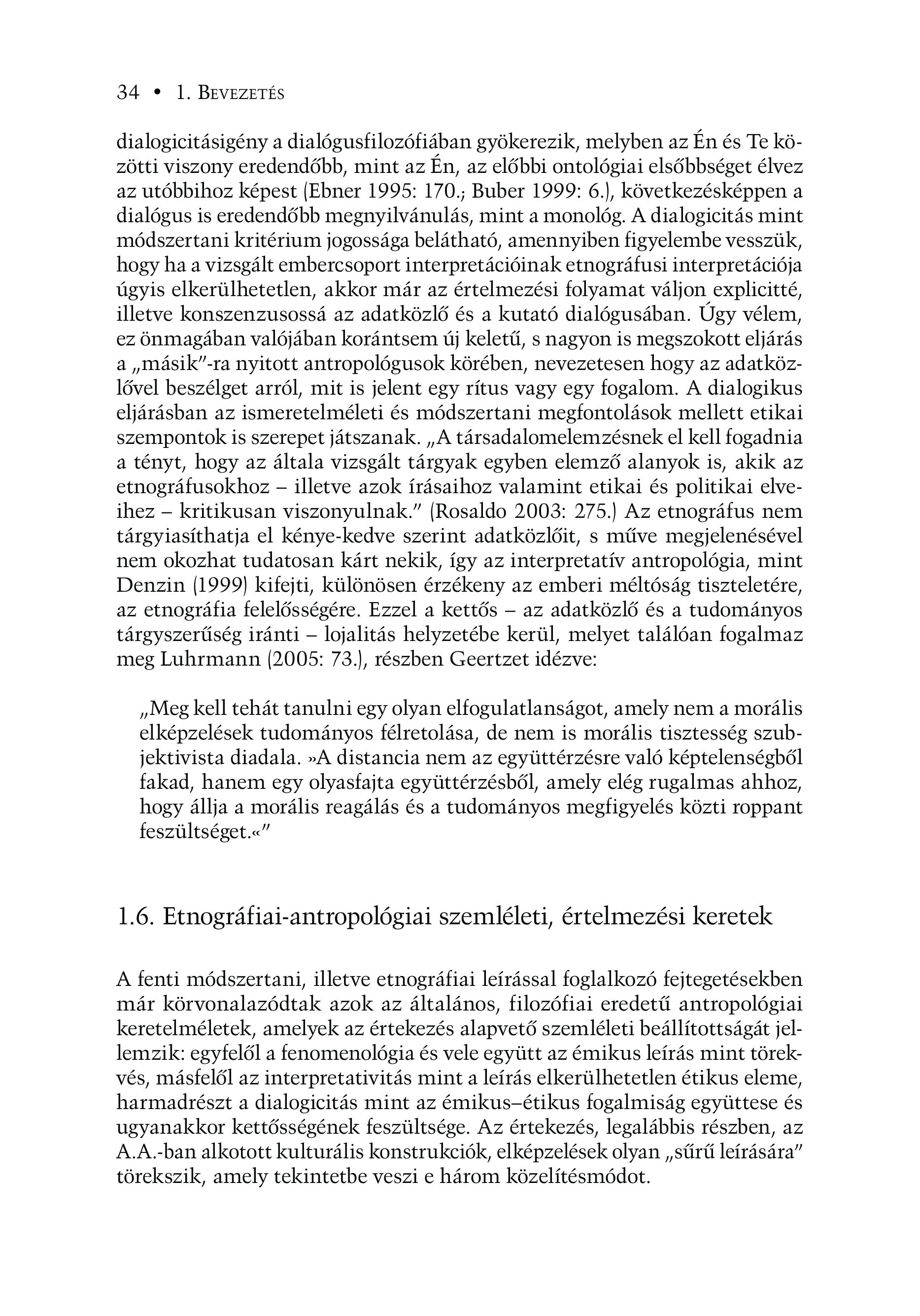34 " 1. BEVEZETÉS zötti viszony eredendőbb, mint az Én, az előbbi ontológiai elsőbbséget élvez az utóbbihoz képest (Ebner 1995: 170.; Buber 1999: 6.], következésképpen a dialógus is eredendőbb megnyilvánulás, mint a monológ. A dialogicitás mint módszertani kritérium jogossága belátható, amennyiben figyelembe vesszük, hogy ha a vizsgált embercsoport interpretációinak etnográfusi interpretációja úgyis elkerülhetetlen, akkor már az értelmezési folyamat váljon explicitté, illetve konszenzusossá az adatközlő és a kutató dialógusában. Úgy vélem, ez önmagában valójában korántsem új keletű, s nagyon is megszokott eljárás a , másik"-ra nyitott antropológusok körében, nevezetesen hogy az adatközlővel beszélget arról, mit is jelent egy rítus vagy egy fogalom. A dialogikus eljárásban az ismeretelméleti és módszertani megfontolások mellett etikai szempontok is szerepet játszanak. , A társadalomelemzésnek el kell fogadnia a tényt, hogy az általa vizsgált tárgyak egyben elemző alanyok is, akik az etnogräfusokhoz - illetve azok iräsaihoz valamint etikai és politikai elveihez - kritikusan viszonyulnak.” (Rosaldo 2003: 275.) Az etnogräfus nem tárgyiasíthatja el kénye-kedve szerint adatközlőit, s műve megjelenésével nem okozhat tudatosan kárt nekik, így az interpretatív antropológia, mint Denzin (1999] kifejti, különösen érzékeny az emberi méltóság tiszteletére, az etnográfia felelősségére. Ezzel a kettős — az adatközlő és a tudományos tárgyszerűség iránti — lojalitás helyzetébe kerül, melyet találóan fogalmaz meg Luhrmann (2005: 73.), részben Geertzet idézve: , Meg kell tehát tanulni egy olyan elfogulatlanságot, amely nem a morális elképzelések tudományos félretolása, de nem is morális tisztesség szubjektivista diadala. »A distancia nem az együtterzesre valö keptelensegböl fakad, hanem egy olyasfajta együttérzésből, amely elég rugalmas ahhoz, hogy állja a morális reagálás és a tudományos megfigyelés közti roppant feszültséget." 1.6. Etnográfiai-antropológiai szemléleti, értelmezési keretek A fenti módszertani, illetve etnográfiai leírással foglalkozó fejtegetésekben már körvonalazódtak azok az általános, filozófiai eredetű antropológiai keretelméletek, amelyek az értekezés alapvető szemléleti beállítottságát jellemzik: egyfelől a fenomenológia és vele együtt az émikus leírás mint törekvés, másfelől az interpretativitás mint a leírás elkerülhetetlen étikus eleme, harmadrészt a dialogicitás mint az émikus-étikus fogalmiság együttese és ugyanakkor kettősségének feszültsége. Az értekezés, legalábbis részben, az A.A.-ban alkotott kulturális konstrukciók, elképzelések olyan , sűrű leírására" törekszik, amely tekintetbe veszi e három közelítésmódot.