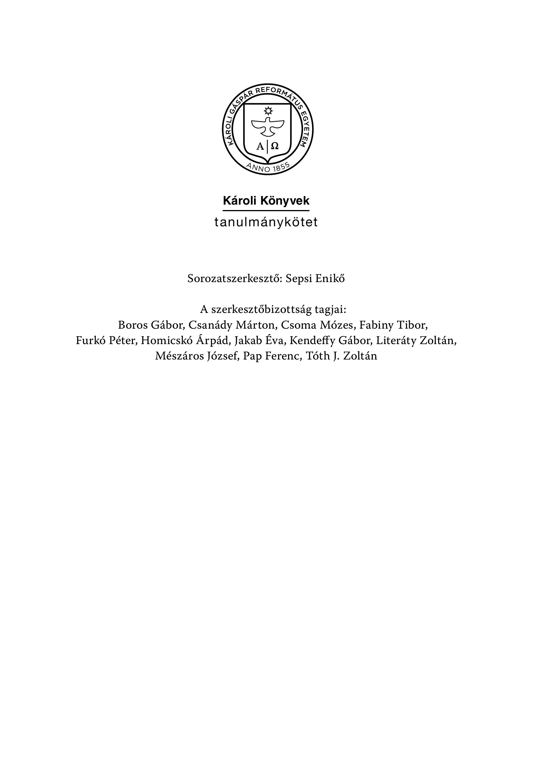 tanulmánykötet Sorozatszerkesztő: Sepsi Enikő A szerkesztőbizottság tagjai: Boros Gábor, Csanády Márton, Csoma Mózes, Fabiny Tibor, Furkó Péter, Homicskó Árpád, Jakab Éva, Kendeffy Gábor, Literáty Zoltán, Mészáros József, Pap Ferenc, Tóth J. Zoltán