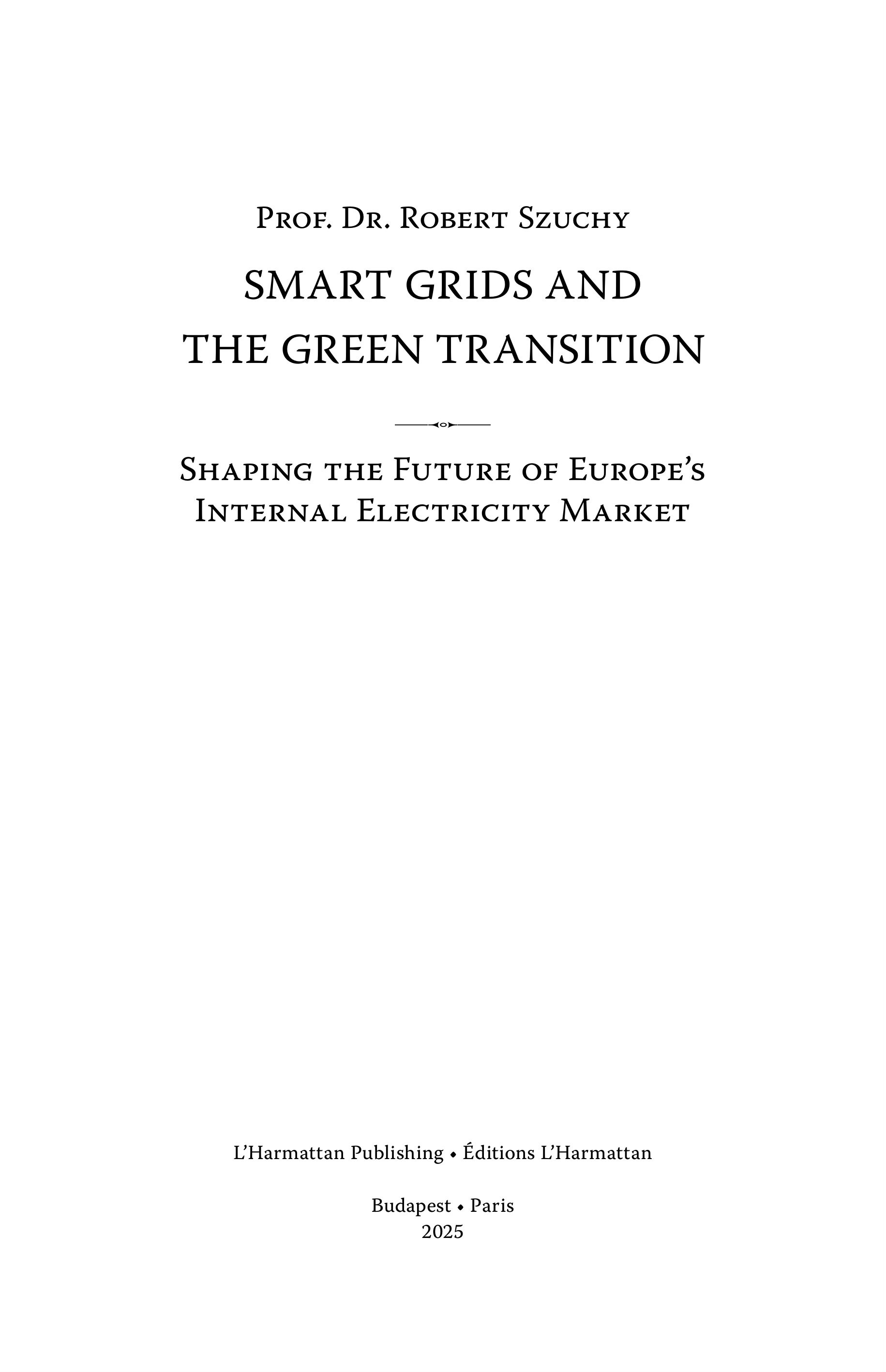 PROF. DR. ROBERT SZUCHY SMART GRIDS AND THE GREEN TRANSITION —to> SHAPING THE FUTURE OF EUROPE’S INTERNAL ELECTRICITY MARKET L'Harmattan Publishing + Editions L'Harmattan Budapest + Paris 2025