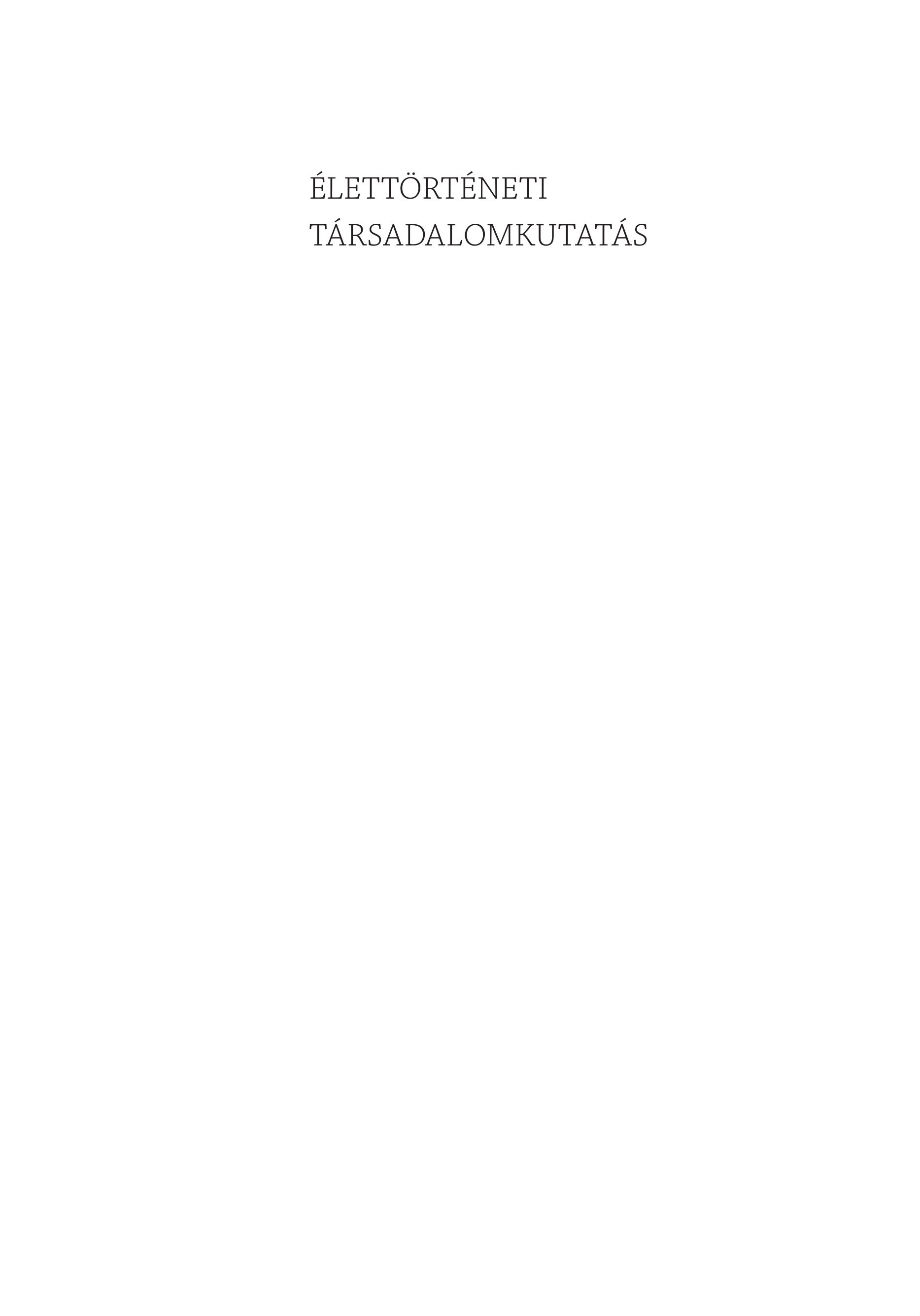 Élettörténeti társadalomkutatás. Elméleti és empirikus megközelítések
