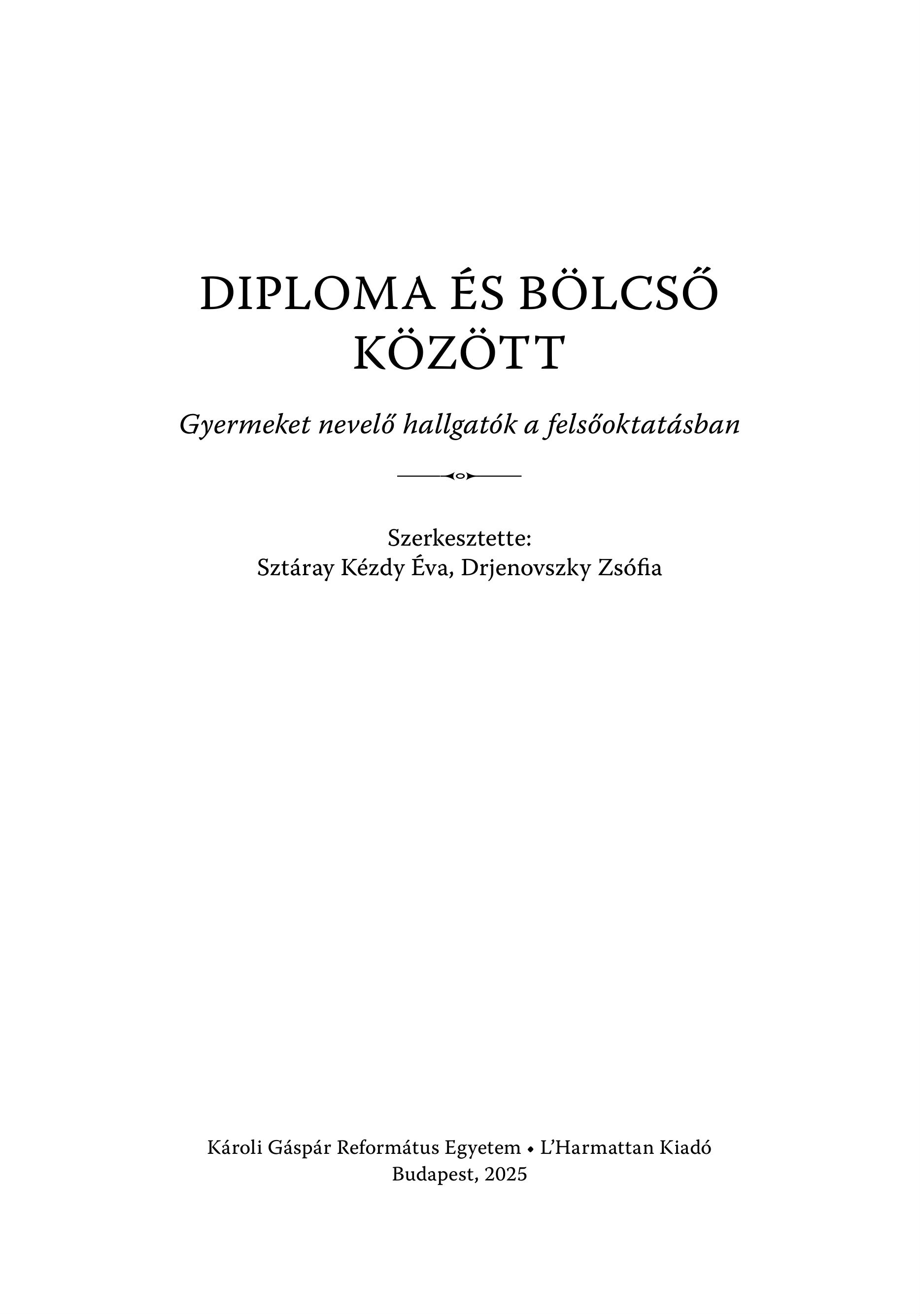 DIPLOMA ÉS BÖLCSŐ KÖZÖTT Gyermeket nevelő hallgatók a felsőoktatásban OJ — Szerkesztette: Sztáray Kézdy Éva, Drjenovszky Zsófia Károli Gáspár Református Egyetem e LHarmattan Kiadó Budapest, 2025