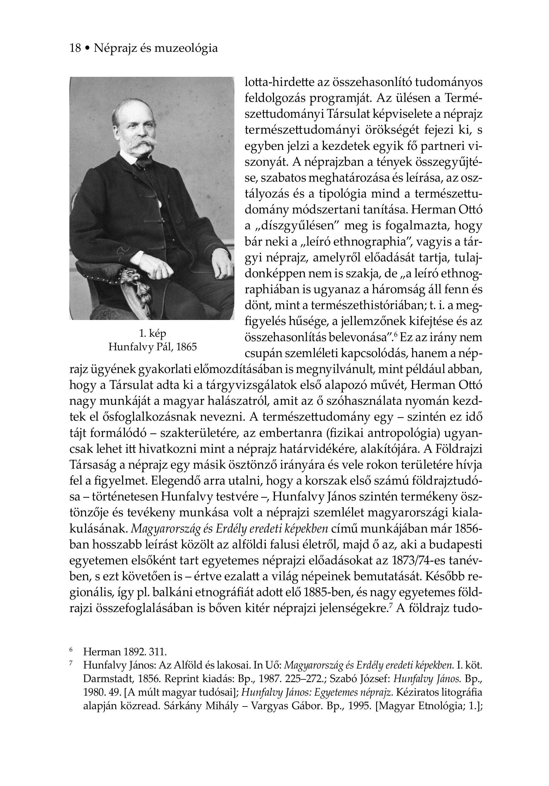 18 e Néprajz és muzeológia lotta-hirdette az összehasonlító tudományos feldolgozás programját. Az ülésen a Természettudományi Társulat képviselete a néprajz természettudományi örökségét fejezi ki, s egyben jelzi a kezdetek egyik fő partneri viszonyát. A néprajzban a tények összegyűjtése, szabatos meghatározása és leírása, az Osztályozás és a tipológia mind a természettudomány módszertani tanítása. Herman Ottó a , díszgyűlésen" meg is fogalmazta, hogy bár neki a , leíró ethnographia", vagyis a tárgyi néprajz, amelyről előadását tartja, tulajdonképpen nem is szakja, de ,,a leird ethnographiaban is ugyanaz a haromsag all fenn és dont, mint a természethistoriaban; t. i. a megfigyelés hűsége, a jellemzőnek kifejtése és az összehasonlítás belevonása"." Ez az irány nem csupán szemléleti kapcsolódás, hanem a néprajz ügyének gyakorlati előmozdításában is megnyilvánult, mint például abban, hogy a Társulat adta ki a tárgyvizsgálatok első alapozó művét, Herman Ottó nagy munkáját a magyar halászatról, amit az ő szóhasználata nyomán kezdtek el ősfoglalkozásnak nevezni. A természettudomány egy - szintén ez idő tájt formálódó - szakterületére, az embertanra (fizikai antropológia) ugyancsak lehet itt hivatkozni mint a néprajz határvidékére, alakítójára. A Földrajzi Társaság a néprajz egy másik ösztönző irányára és vele rokon területére hívja fel a figyelmet. Elegendő arra utalni, hogy a korszak első számú földrajztudósa — történetesen Hunfalvy testvére —, Hunfalvy János szintén termékeny ösztönzője és tevékeny munkása volt a néprajzi szemlélet magyarországi kialakulásának. Magyarország és Erdély eredeti képekben című munkájában már 1856ban hosszabb leírást közölt az alföldi falusi életről, majd ő az, aki a budapesti egyetemen elsőként tart egyetemes néprajzi előadásokat az 1873/74-es tanévben, s ezt követően is - értve ezalatt a világ népeinek bemutatását. Később regionális, így pl. balkáni etnográfiát adott elő 1885-ben, és nagy egyetemes földrajzi összefoglalásában is bőven kitér néprajzi jelenségekre." A földrajz tudo ° Herman 1892. 311. 7" Hunfalvy János: Az Alföld és lakosai. In Uó: Magyarország és Erdély eredeti képekben. I. köt. Darmstadt, 1856. Reprint kiadas: Bp., 1987. 225-272.; Szabo Jozsef: Hunfalvy Janos. Bp., 1980. 49. TA múlt magyar tudósai]; Hunfalvy János: Egyetemes néprajz. Kéziratos litográfia alapján közread. Sárkány Mihály - Vargyas Gäbor. Bp., 1995. [Magyar Etnolögia; 1.];