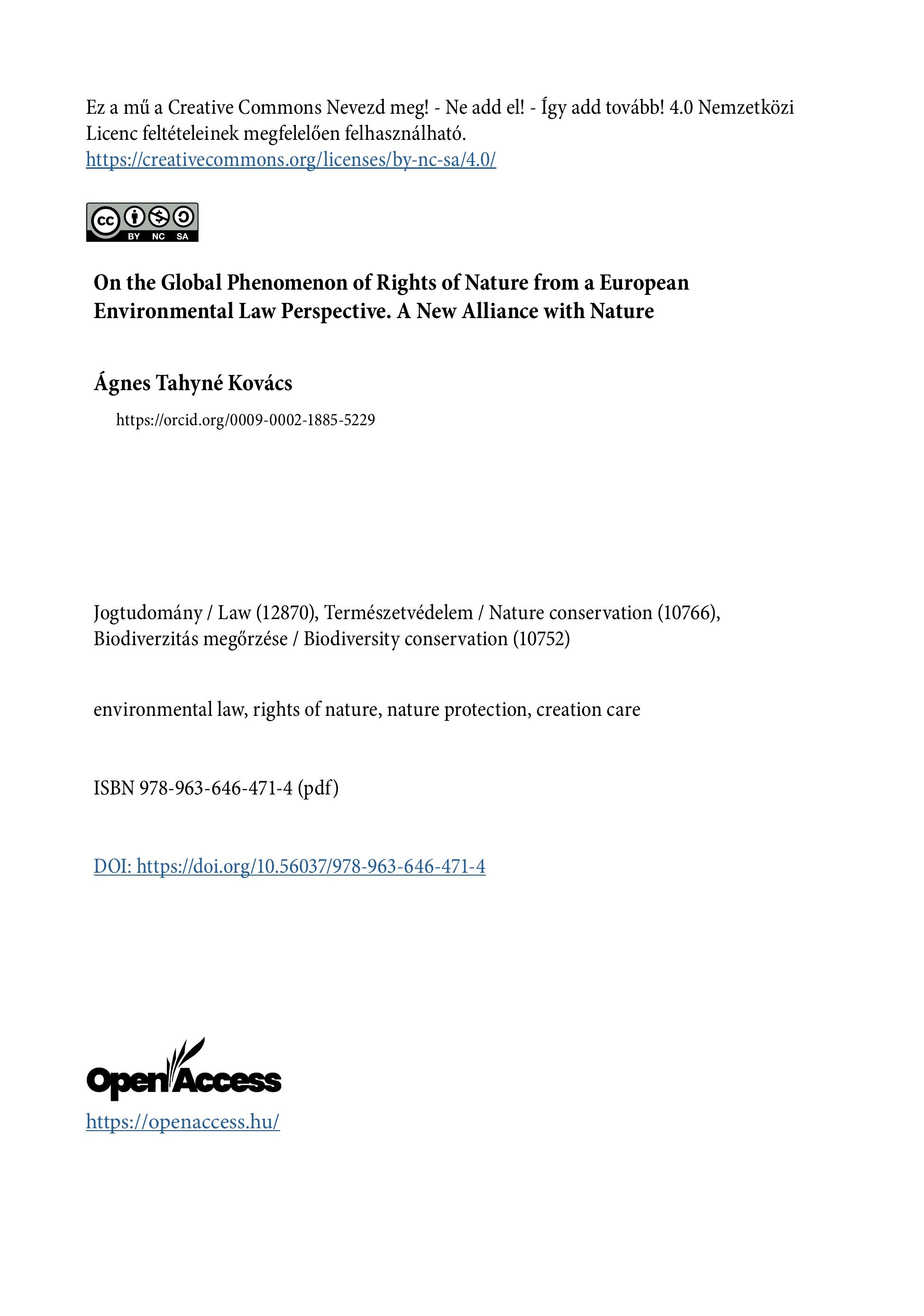 Jogtudomány / Law (12870), Természetvédelem / Nature conservation (10766), Biodiverzitás megőrzése / Biodiversity conservation (10752)