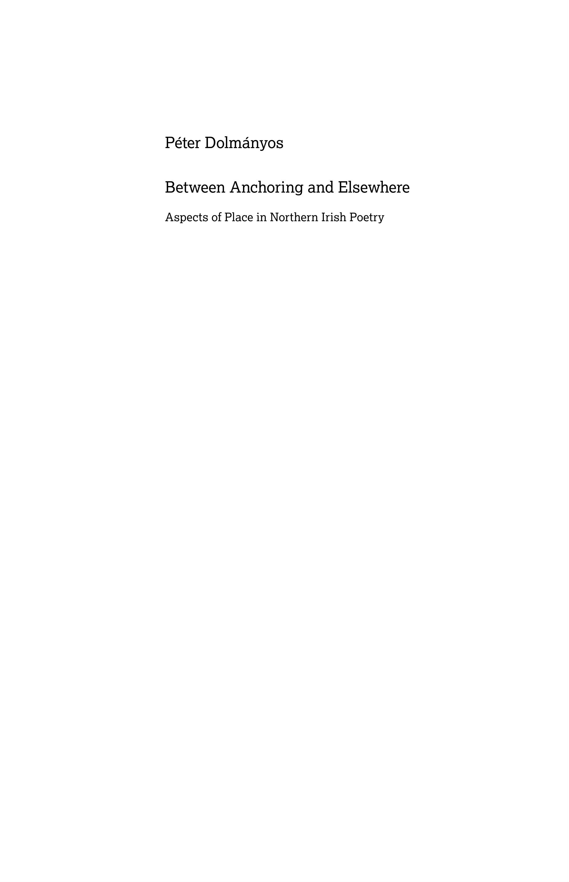 Between Anchoring and Elsewhere. Aspects of place in Northern Irish poetry