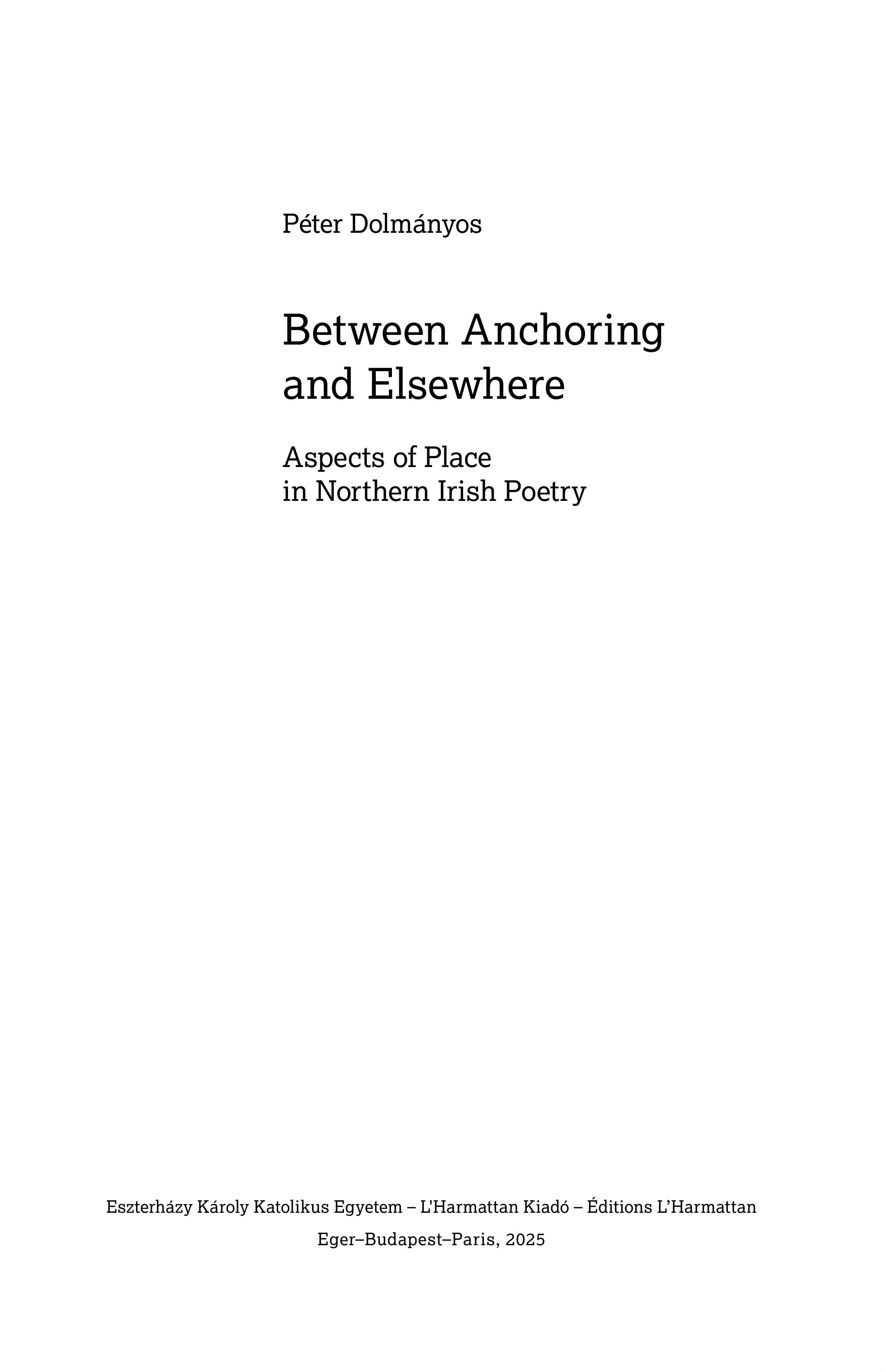 Between Anchoring and Elsewhere. Aspects of place in Northern Irish poetry